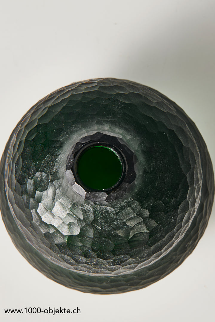 Carlo Scarpa (Italy, 1906-1978), "Battuto" vase, mouth blown glass and general facet cut, acid mark on base reads "Venini Murano", height ca. 1.8.5 cm