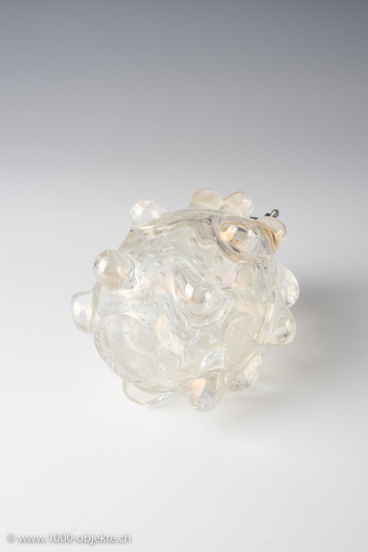 Murano, circa 1935. Colorless glass with air bubble inclusions and slightly iridescent surface. Beautiful condition