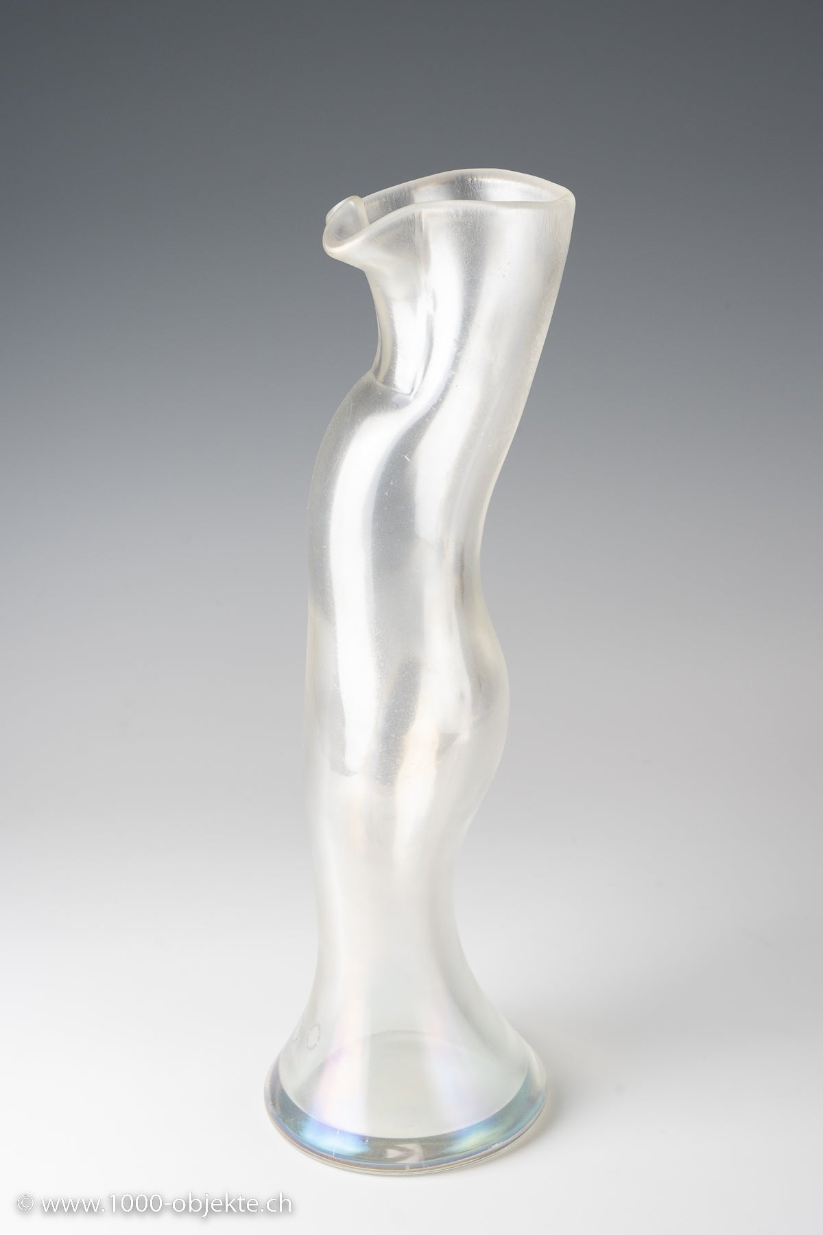 Fulvio Bianconi (Italian, 1915 - 1996) LA DONNA. Iridescent Murano glass vase in the form of a woman. Signed on bottom Venini 91 Fulvio Bianconi, original label.