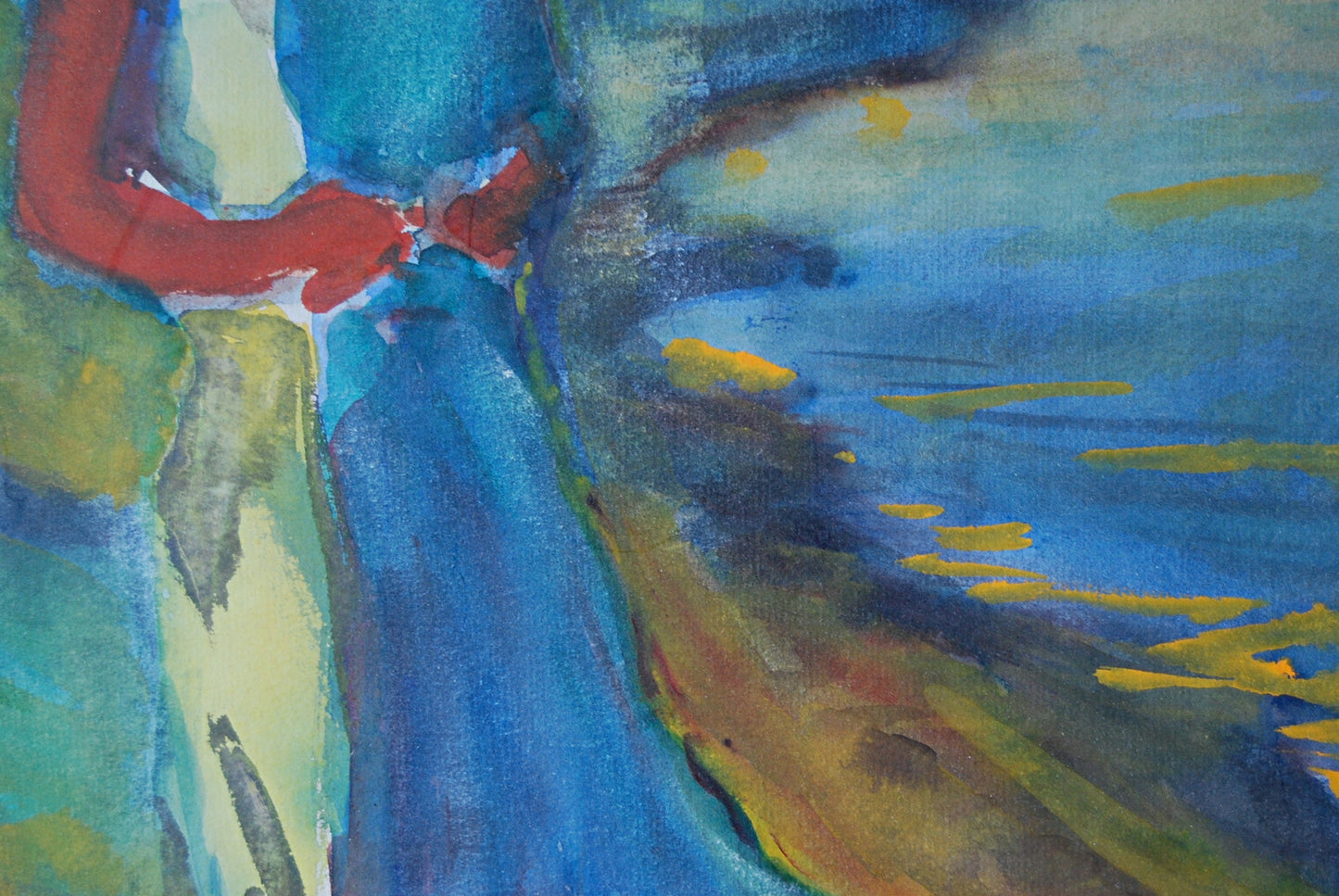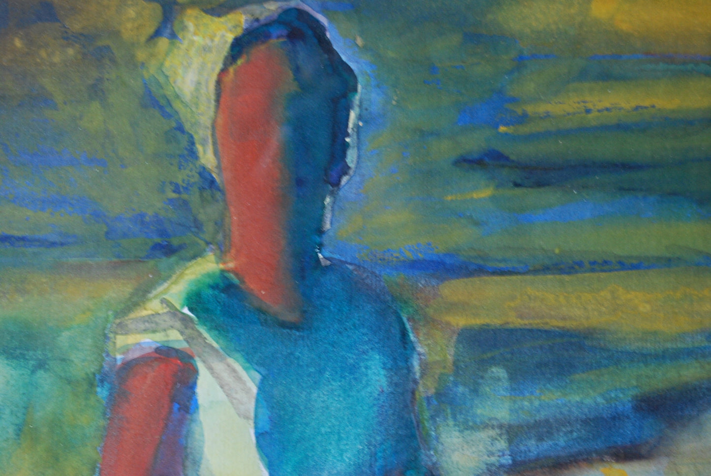 "Girl on the beach" - watercolor, 57 x 36cm, signed and (19)55 dated.