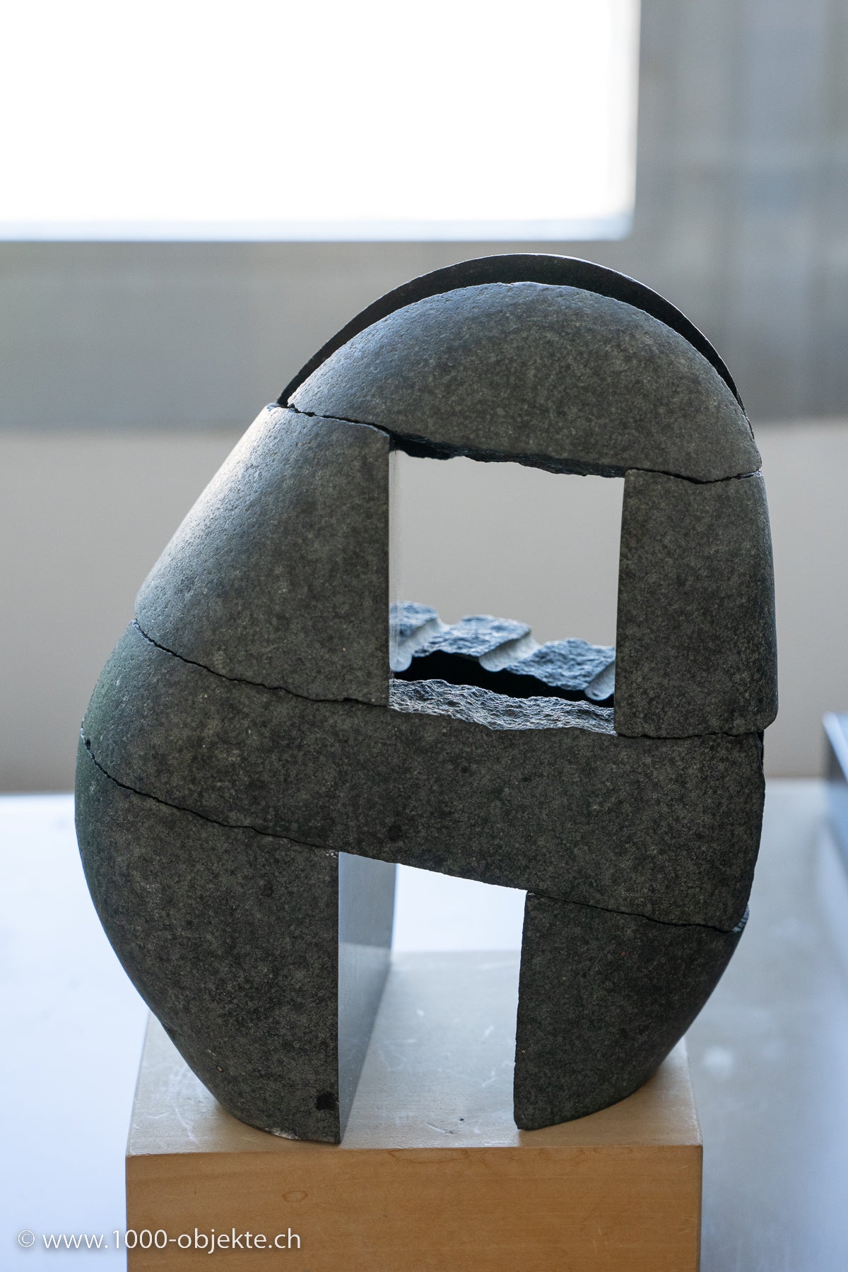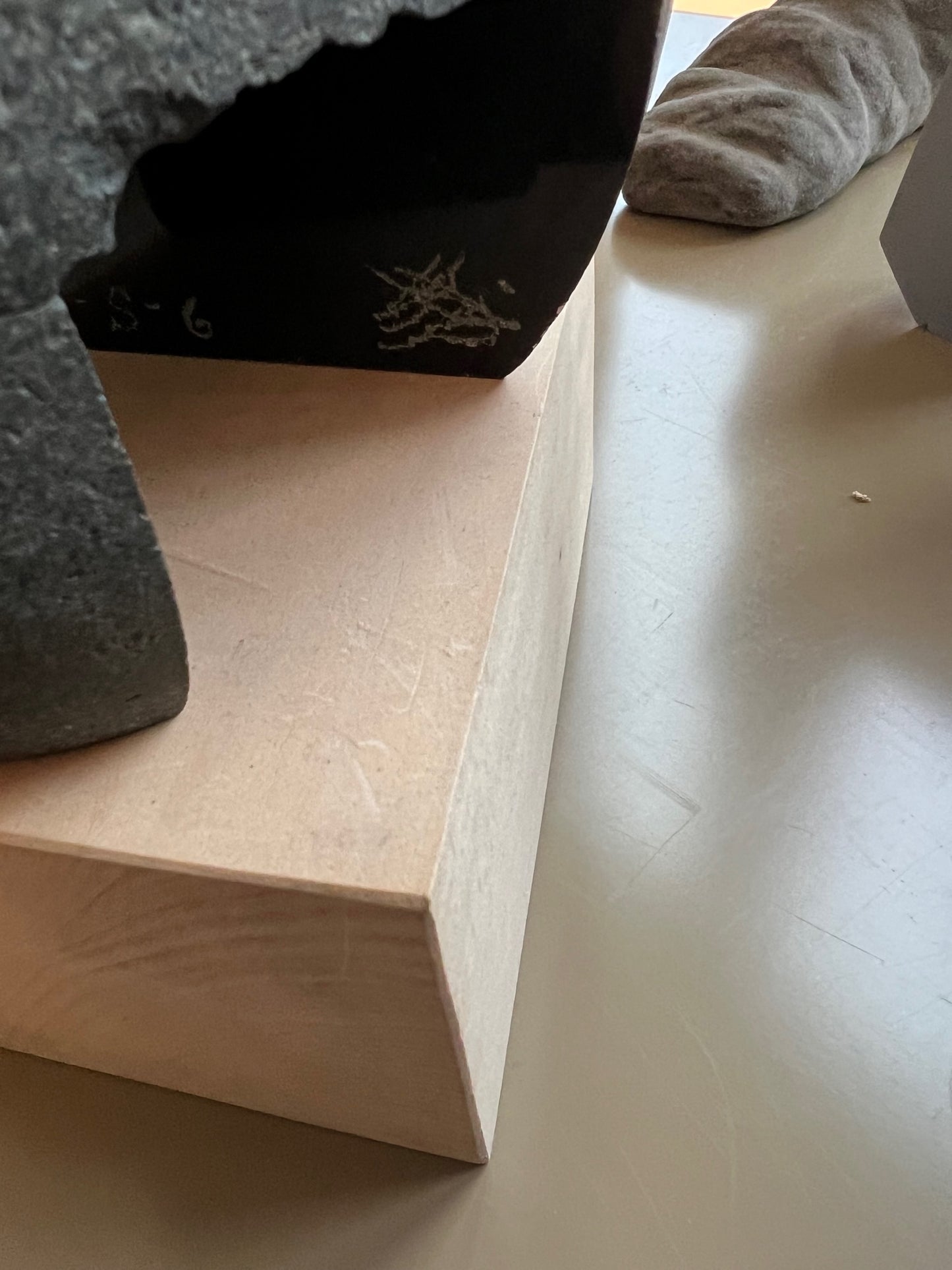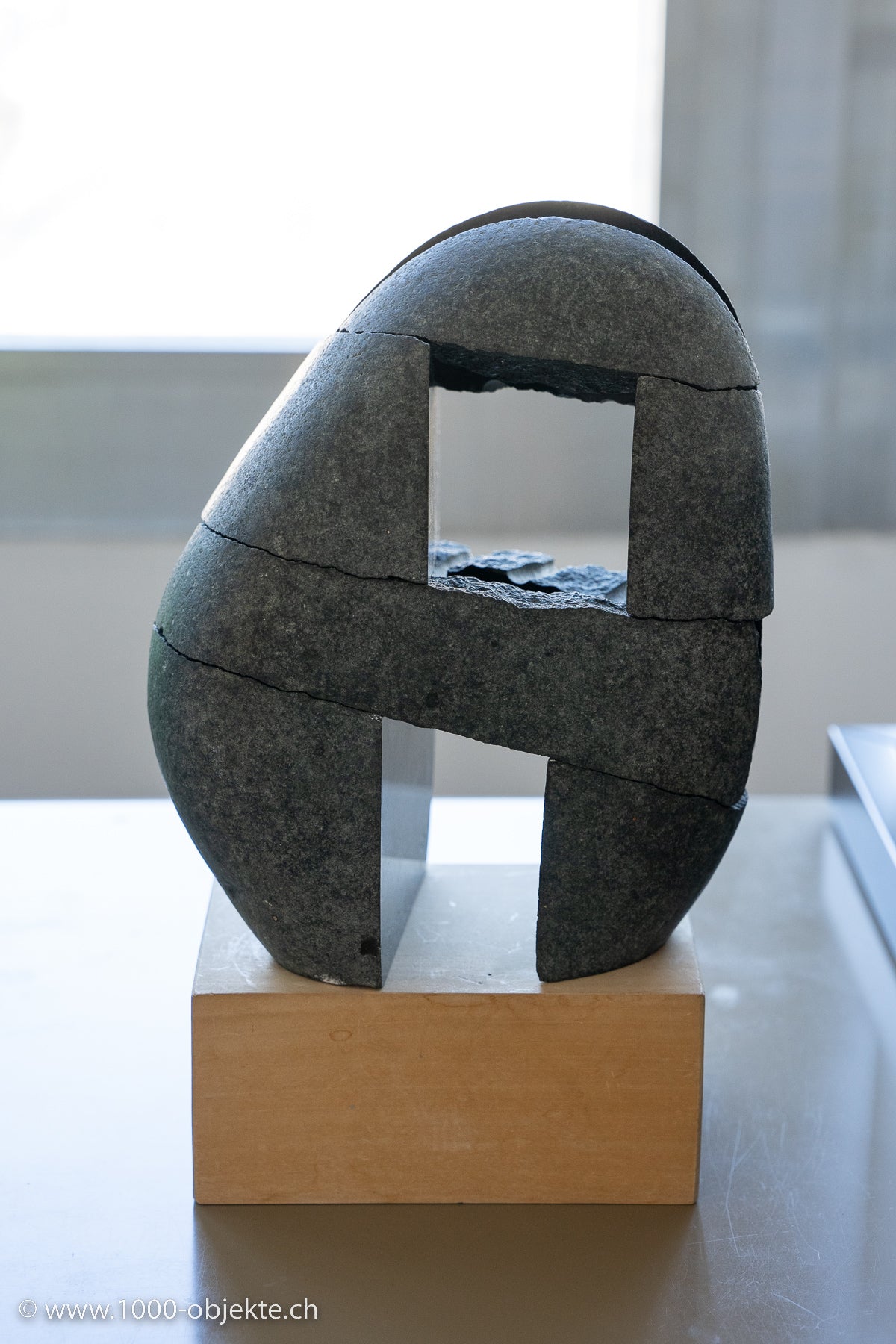 1995. stone sculpture. Signed and dated on the 8-piece sculpture. H 24 on wooden base 31 cm. Minimal rubbed, slightly dirty. Little patina.