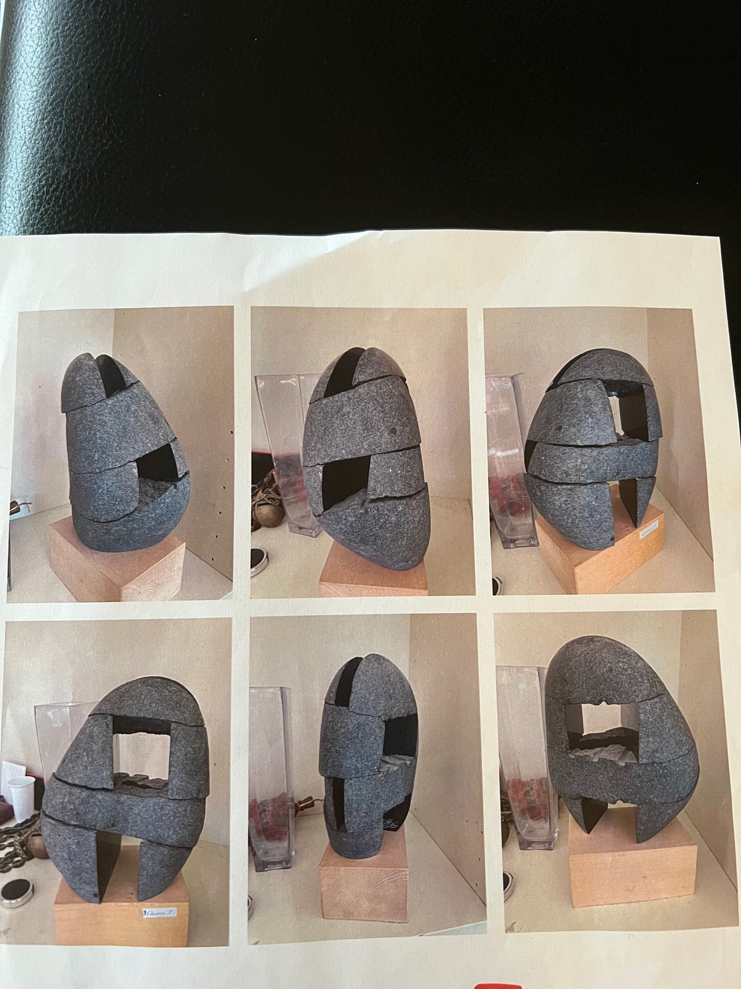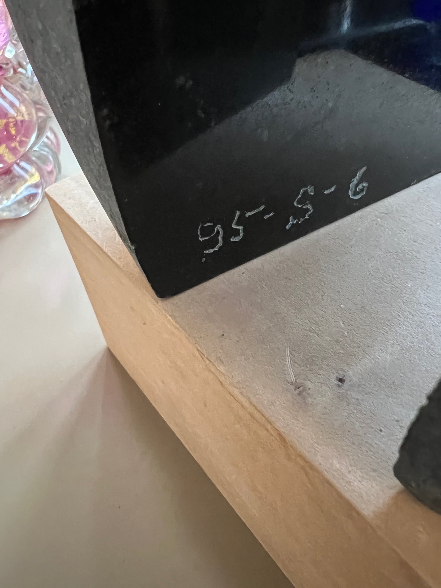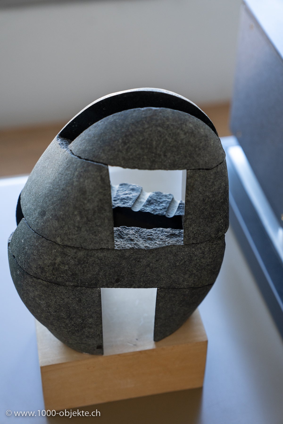1995. stone sculpture. Signed and dated on the 8-piece sculpture. H 24 on wooden base 31 cm. Minimal rubbed, slightly dirty. Little patina.