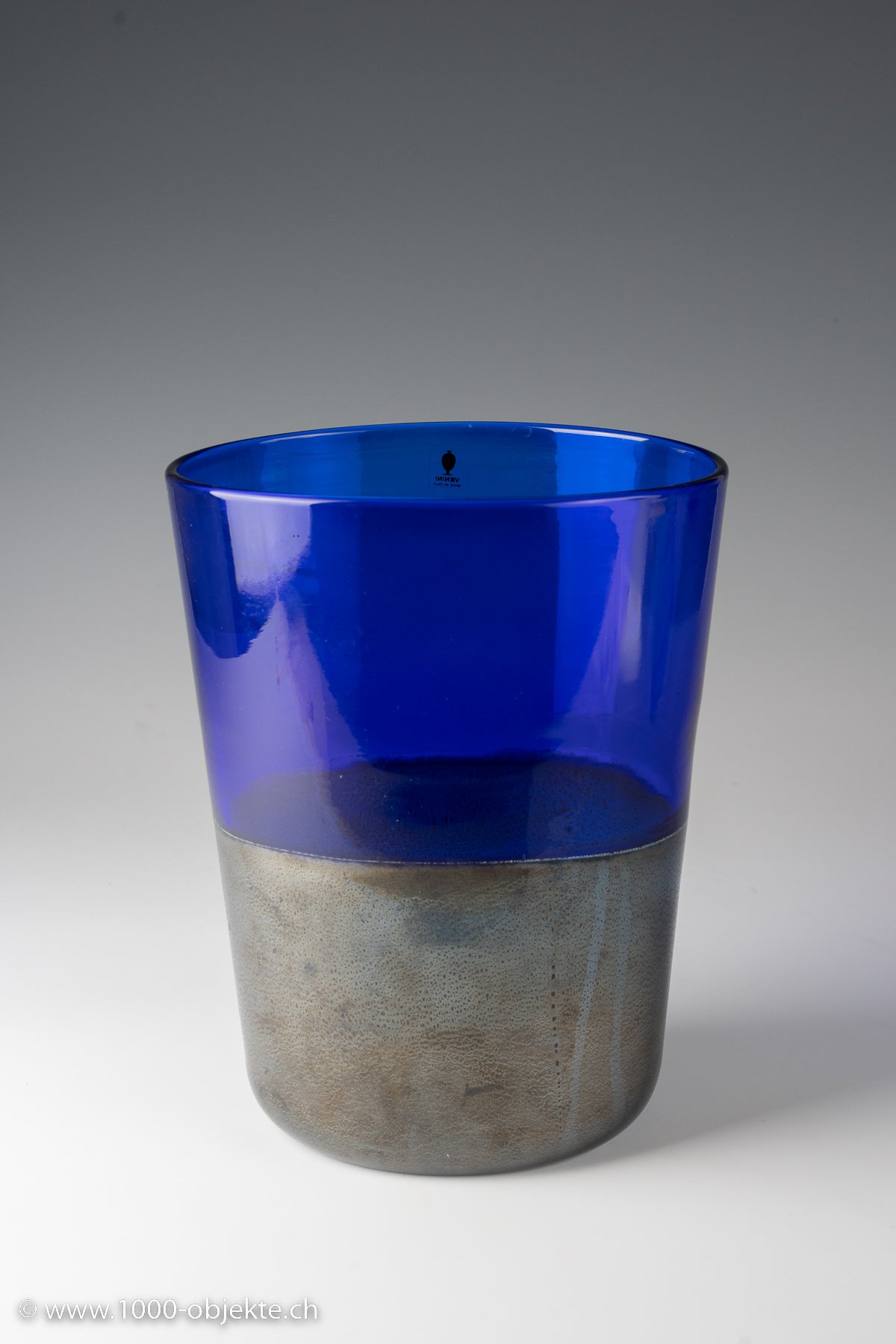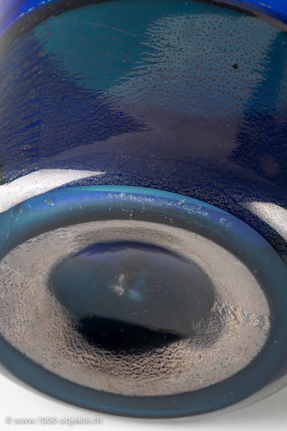 Oval Vase Venini 'Incalmo' Ovale Vase Venini 'Incalmo' Italy, Murano, Venini & C., 1980 Italy, Murano, Venini & C., 1980 Cobalt Blue And Turquoise Green Glass With Meltings Of Shattered Metal Foil.