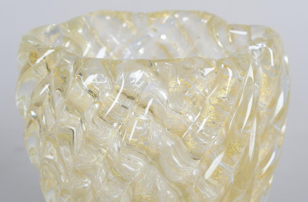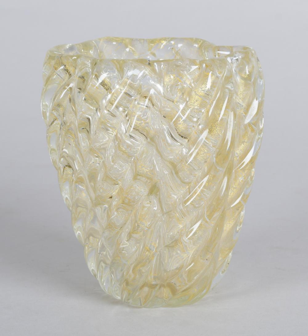 A "Diamante" example from 1932, lobed, with gold flecks and twisted ribs, marked venini italia. For a similar example, see Wright, The Alan Moss Collection, October 2014, lot 142.