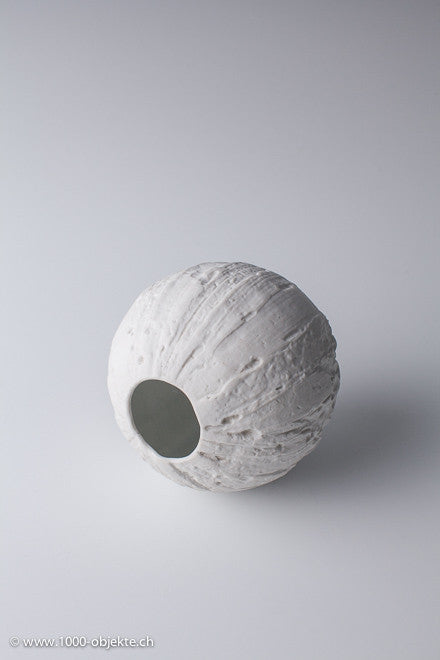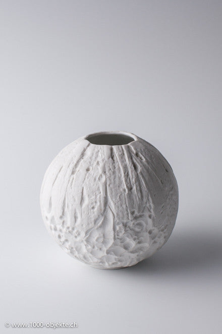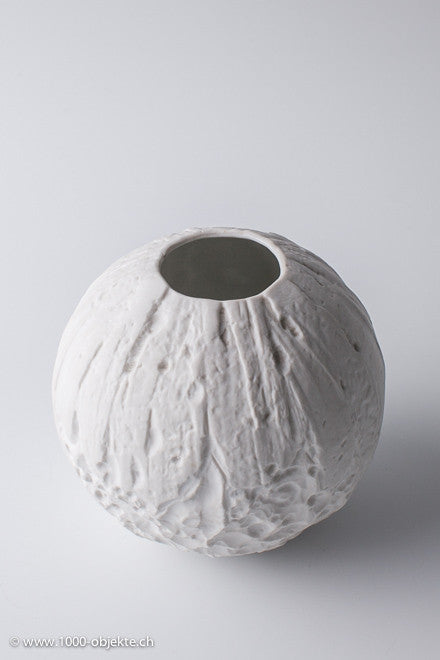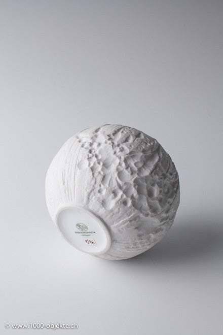 This elegant vase has a globular form, round base and features a crystalline glaze on the exterior and an internal white glaze with a smooth surface. It measures 5.5 in. x 5.5 in. in height and is marked on the underside with the Hutschenreuther Germany 1814 logo. It is in excellent condition.