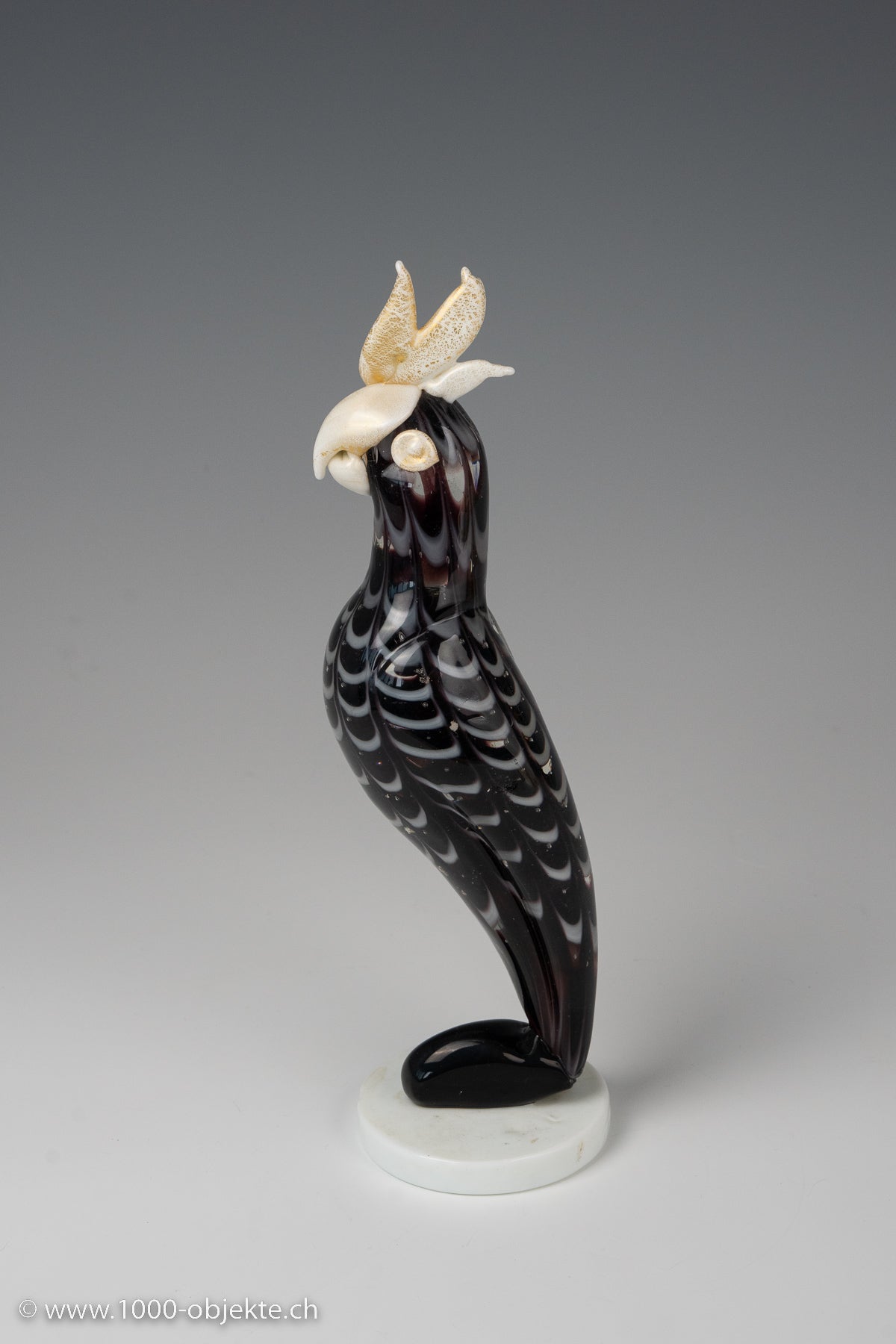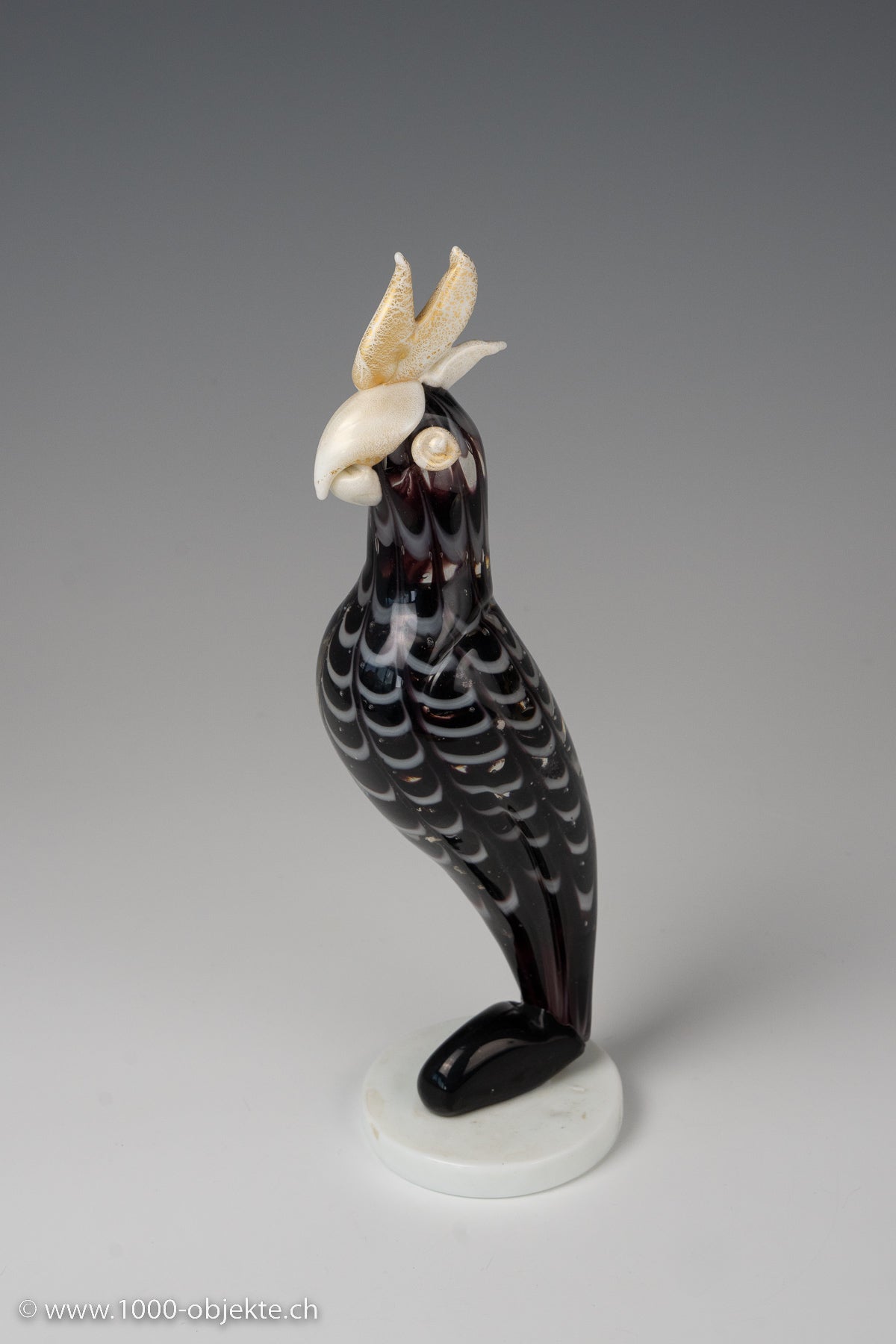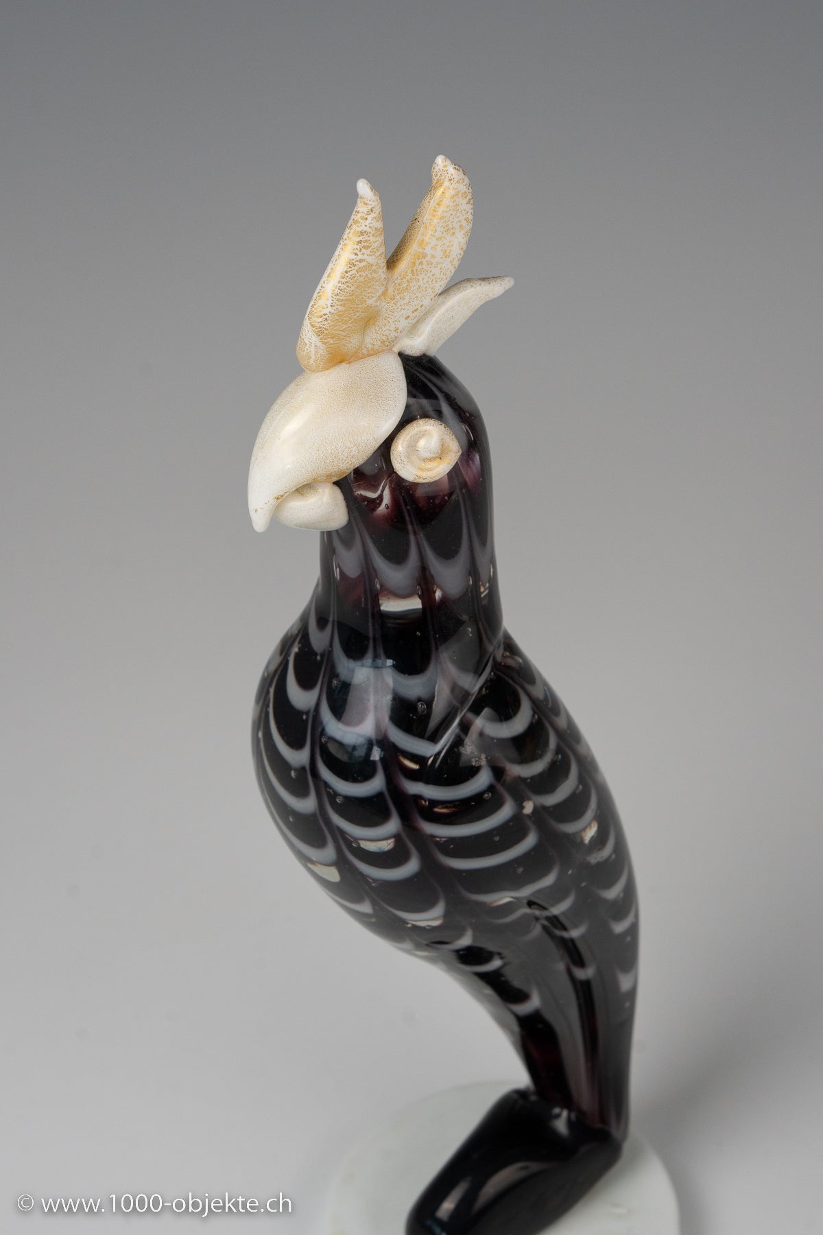 Rare Fulvio Bianconi Venini Bird, Cockatoo in aubergine.  Approx. 30 cm. in height.