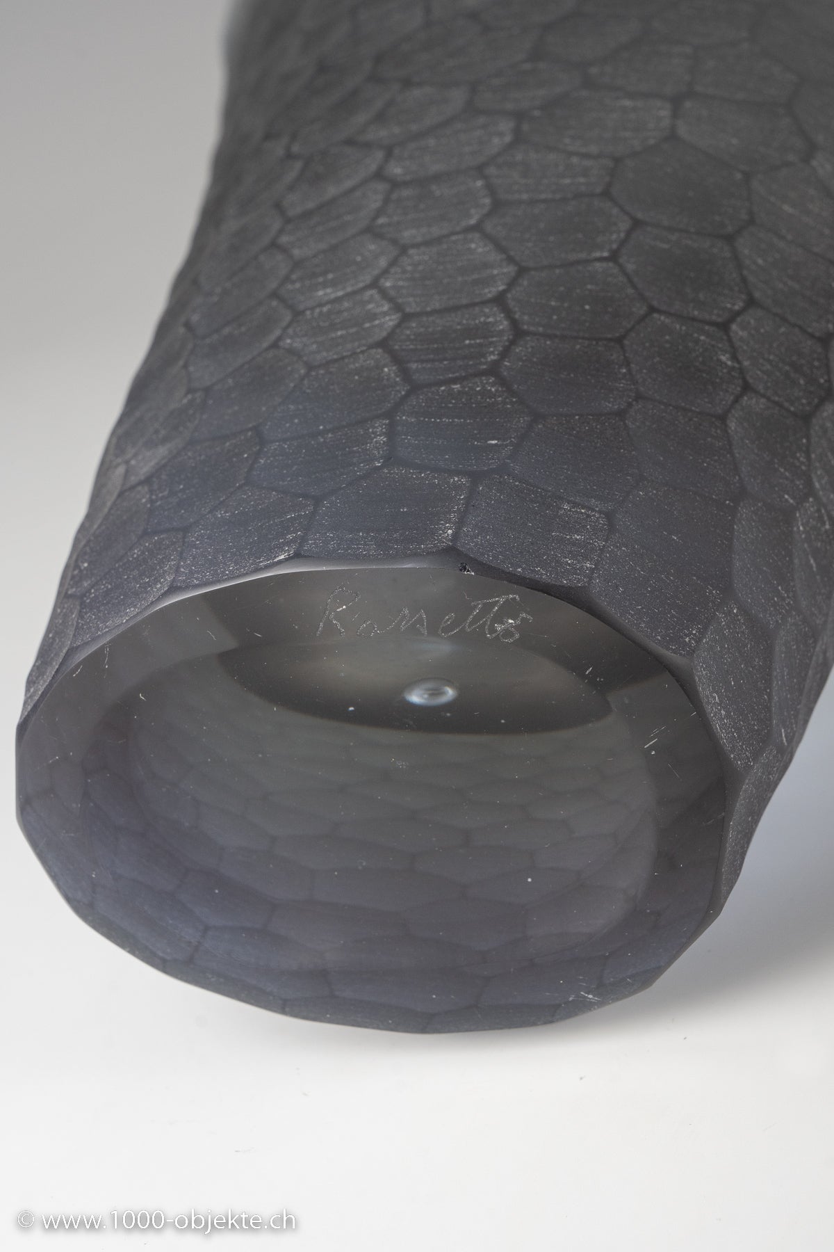 The Rossetto brothers bought the original glasses from Seguso Vetri D'arte in 1958-65. They did not manufacture them, but one of the famous workers cut and engraved the pieces (see below). The signature is made because the pieces were sold through their stores. In the 70's the company collapsed and pieces were purchased from Venini and pieces from the former worker and "cutting master" Neno.
