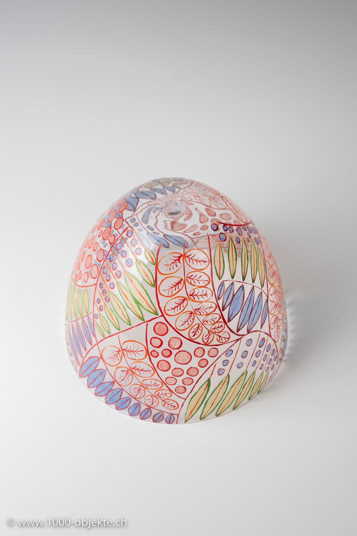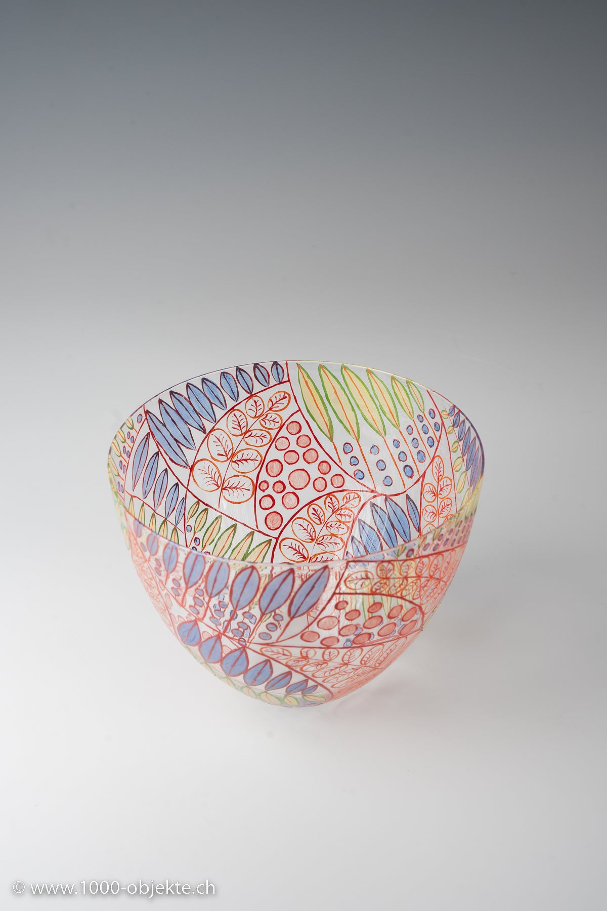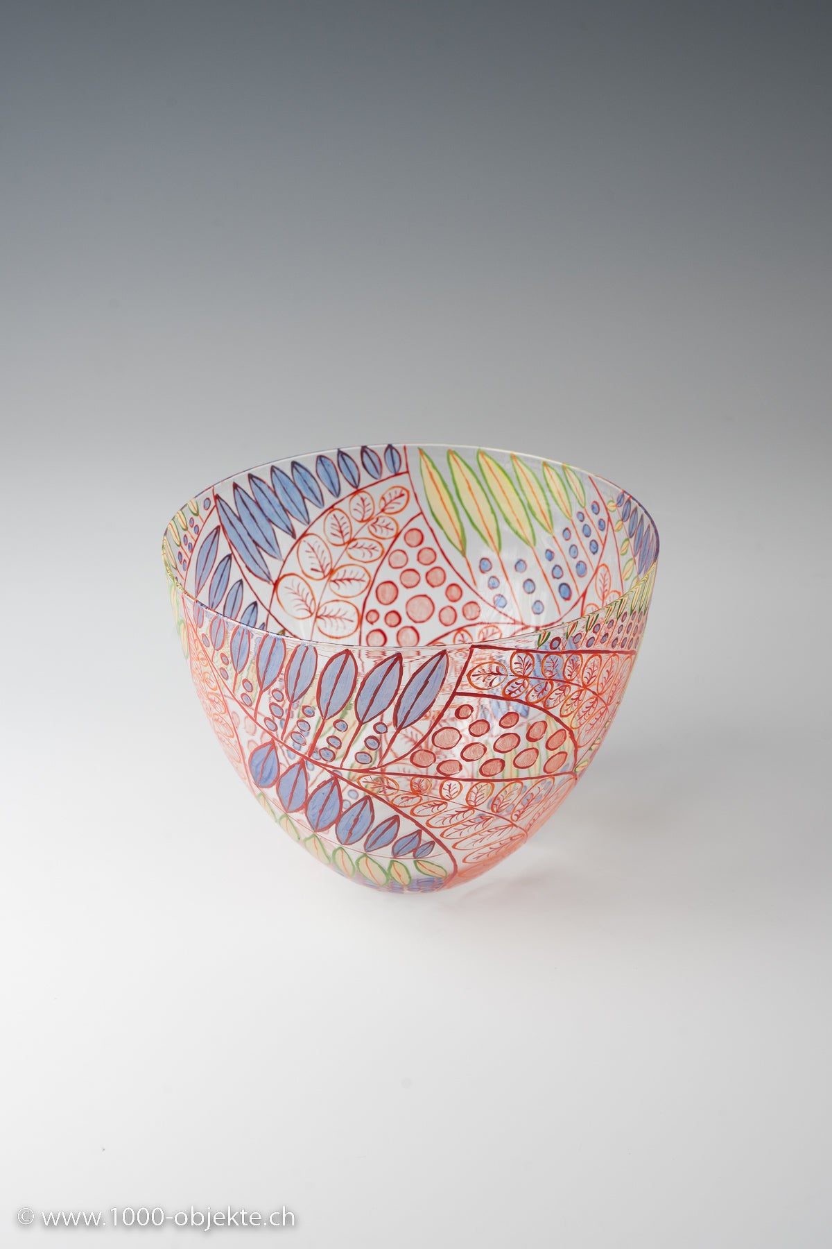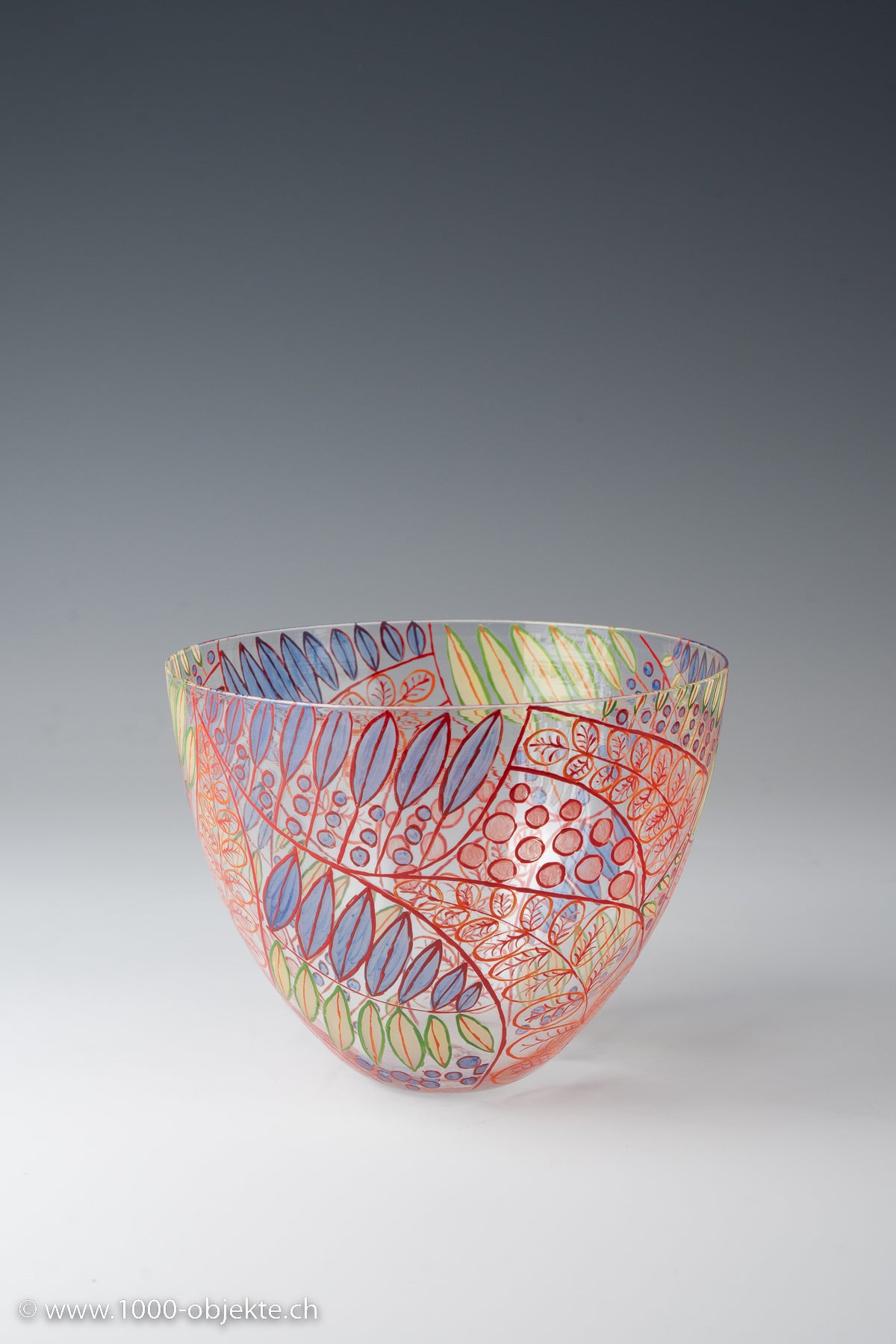 polychrome enameled glass bowl, painted and decorated with foliate stems