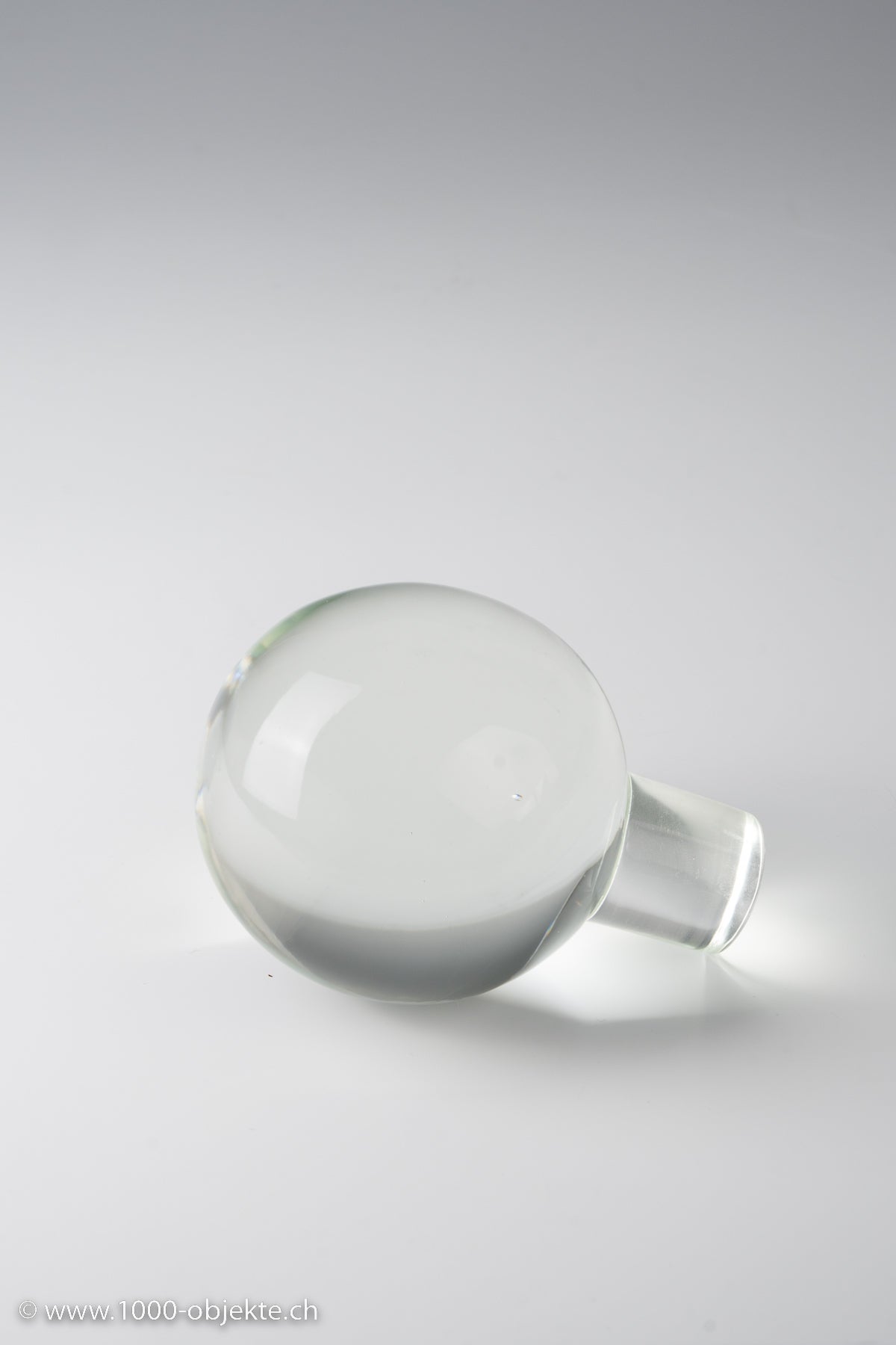 Seguso Murano amber glass bottle, having a squat spherical body and sphere stopper. Hight: 27 cm with stopper.