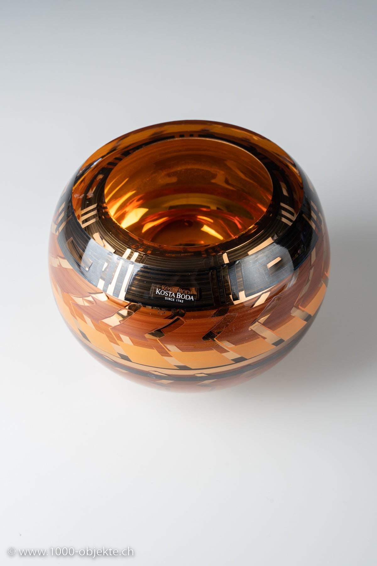 Studio glass gallery object glass Kosta Boda hand painted original label