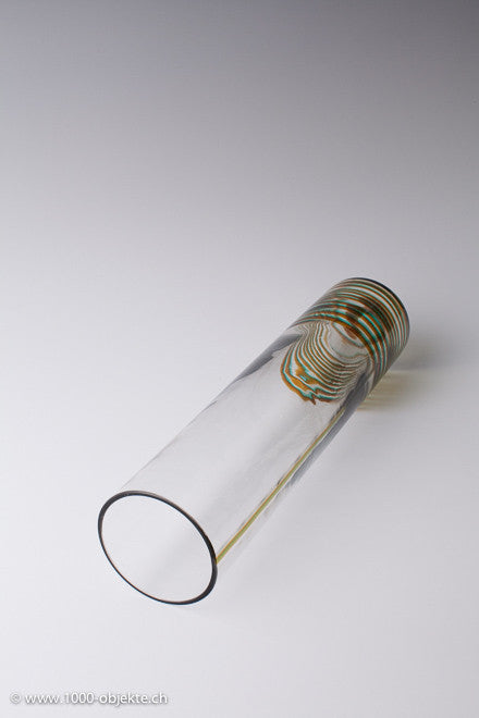 • Clear glass with two (brown and green) vertical ribs making a spiral-like pattern.