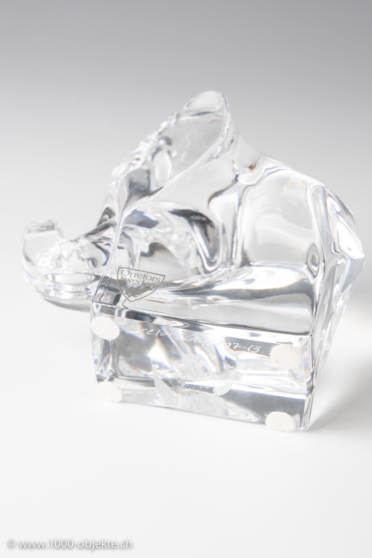 Unnar Cyrén for Orrefors. Lot of 6 Figuren: Strauss, Nilpferd, Frosch, Elefant, Ochse & Gorilla, Entwurf Um 1960 Orrefoors