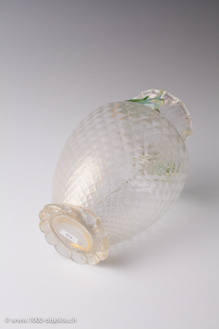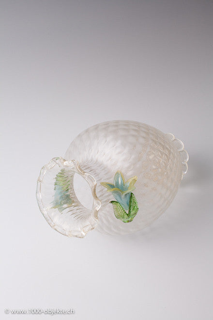 clear glass with honeycomb structure and floral applications produced by Arte Vetraria Muranese (A.Ve.M), Murano, Italy