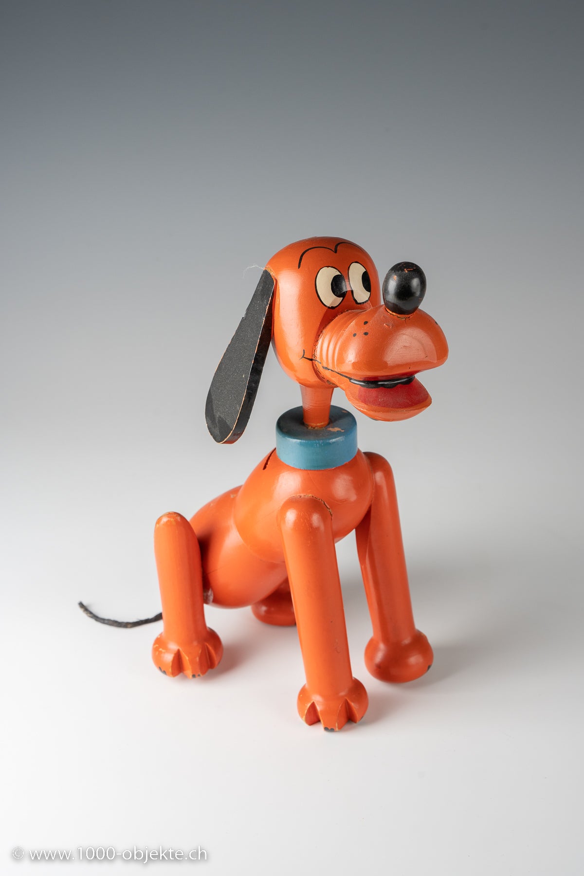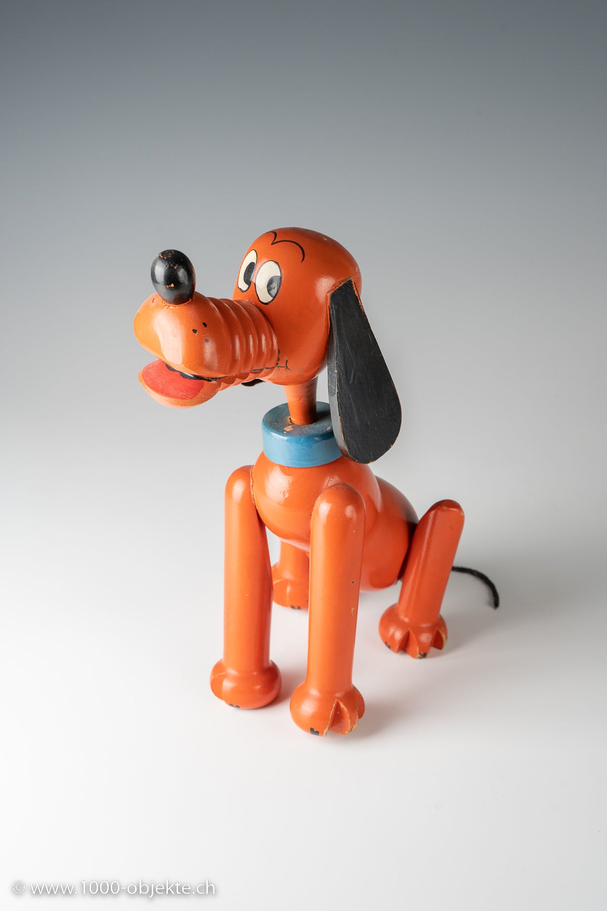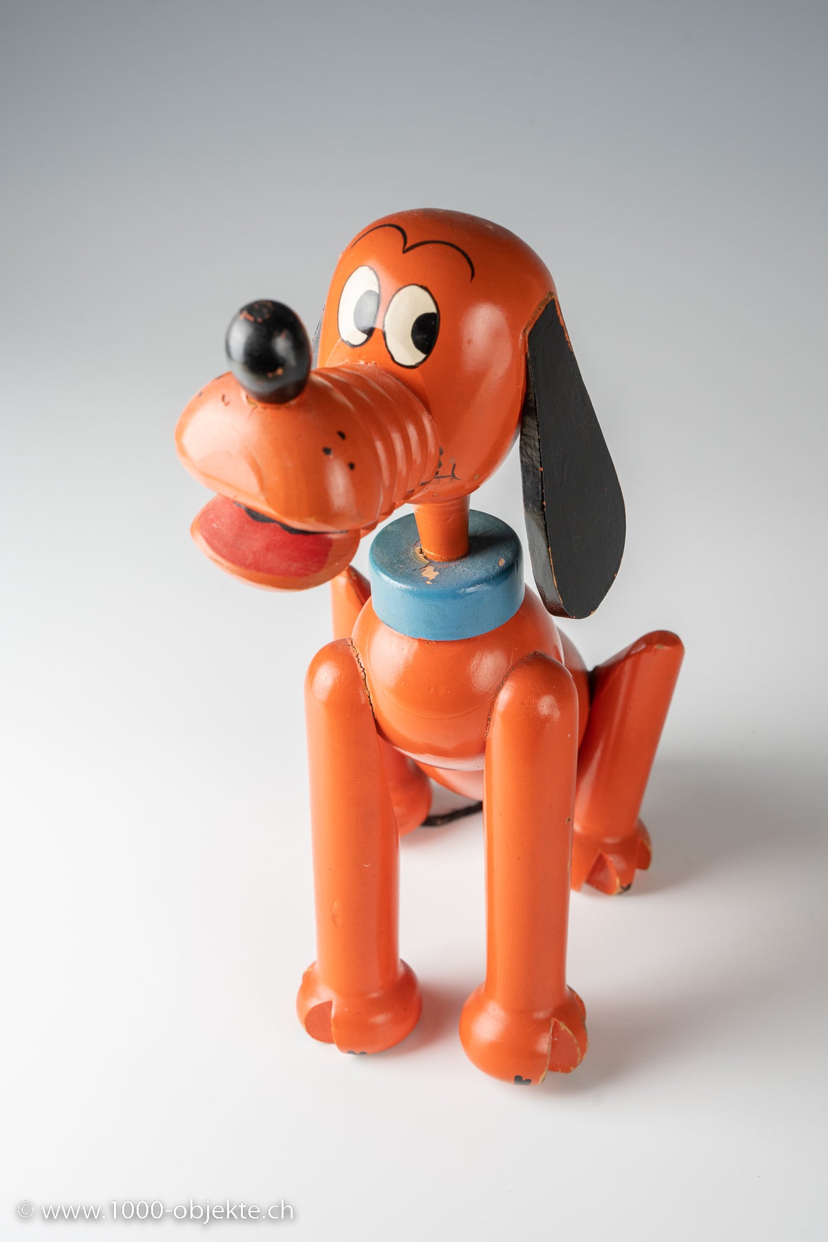 Interesting wooden carved Pluto Bank. Stamped under the foot "c. Walt Disney Productions". Believed to have been made in Spain. Approx. 29 cm in hight.